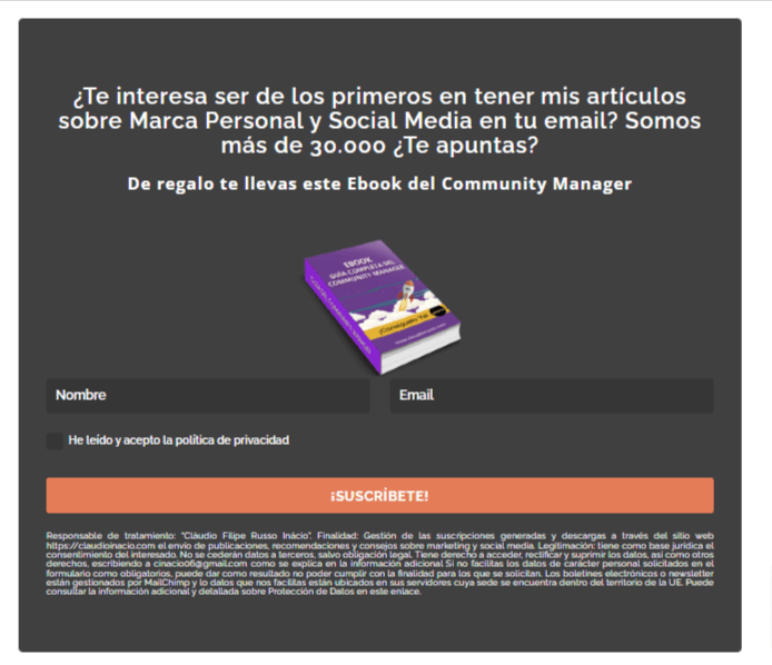 Aquí tienes un ejemplo de una squeeze page.